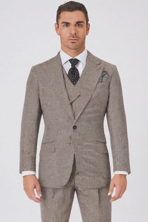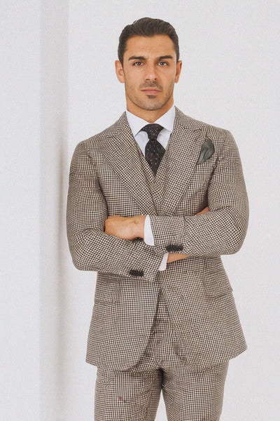 Crafted from premium blended fabrics — often wool or tweed — the suit’s texture and pattern bring warmth and character to its design. Whether it’s a subdued houndstooth, a fine check, or a solid neutral tone, the material choice reinforces the vintage aesthetic while ensuring year-round wearability. The rich texture not only enhances its visual appeal but also offers breathability and structure for all-day comfort.