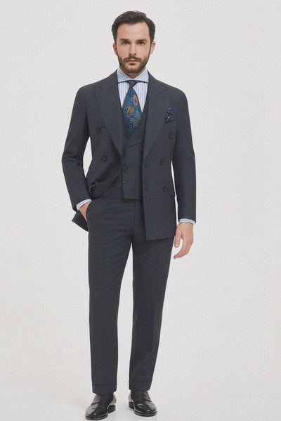 Double Breasted Suits - Vested Suits Wool Fabric - Apolo King Brand - Gray Plaid Suit