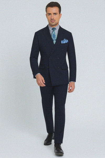Double Breasted Suits - Vested Suits Wool Fabric - Apolo King Brand - Navy Suit