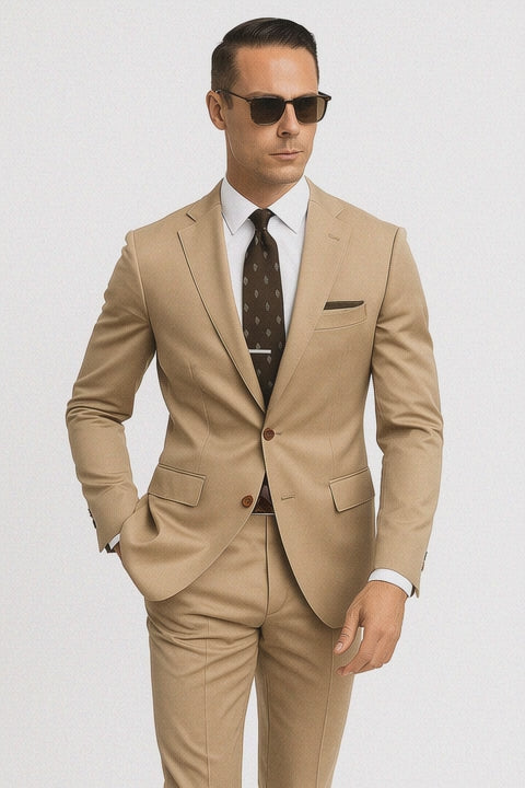 - Crafted from premium breathable cotton, this 2-button, single-breasted suit is designed to keep you cool and confident, even in the hottest temperatures. The soft khaki color makes it an ideal summer suit—versatile, classic, and easy to style with both light and dark accessories.