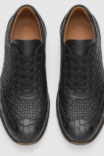 Marco Di Milano Roma Men's Shoes Black Genuine Caiman Crocodile / Woven Leather Fashion Sneakers