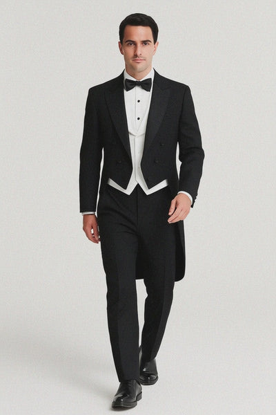 Mens 3pc Vested Classic Tail Tuxedo in Black