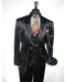 Men's Black 2 Button Velvet Fabric 3 Piece Vested Side Vent Suit with Pleated Pants