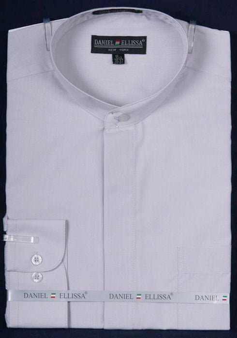 "Silver Grey Men's Classic French Front Dress Shirt with Banded Collar"