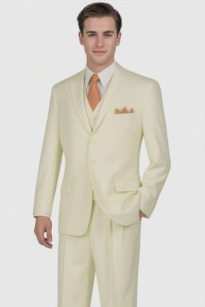 "Classic Fit Men's Three-Button Ivory Suit with Vest and Pleated Pants"