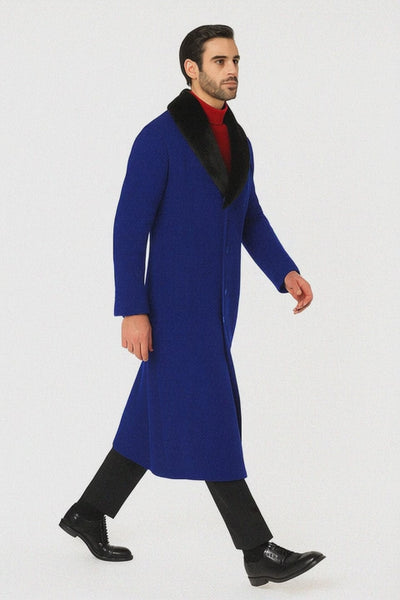 Mens Overcoat -Mens Long Wool Topcoats- Topcoat For Men-Men's Dress Coat Royal Blue