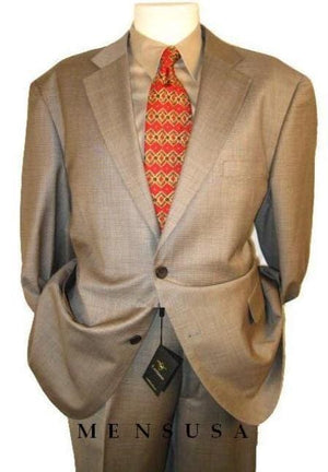 Taupe-Beige Checker Mini Pin-dots Teak-weave Nail-head Salt & Pepper Birdseye Patterned Suit $179.