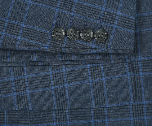 Regular Fit 2 Piece Dress Suit Windowpane in Blue
