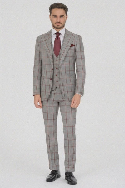 - Grey with Red Windowpane Color