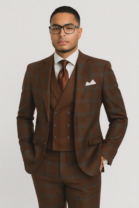 Statement ITALY Suit - Super 150's Wool Suit Statement Men's 3 Piece 100% Wool Fashion Suit - Classic Plaid Pattern