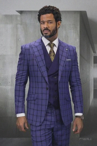 Statement ITALY Suit - Super 150's Wool Suit Statement Men's 3 Piece Modern Fit 100% Wool Suit - Plaid with Solid Vest