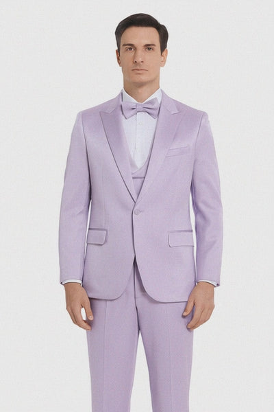 Tazzio Men's Formal Lavender Satin 3 Piece Slim Fit Suit with Peak Lapel Jacket and Vest – Luxury Design