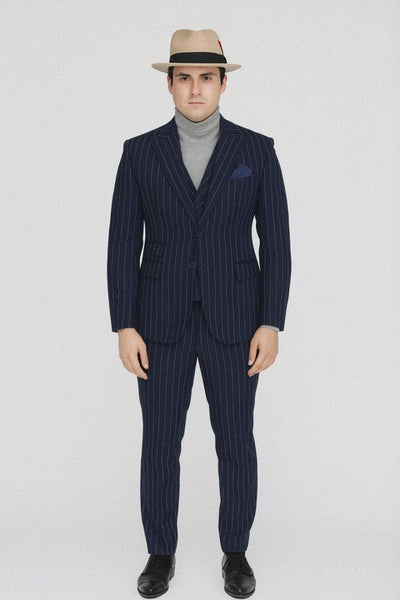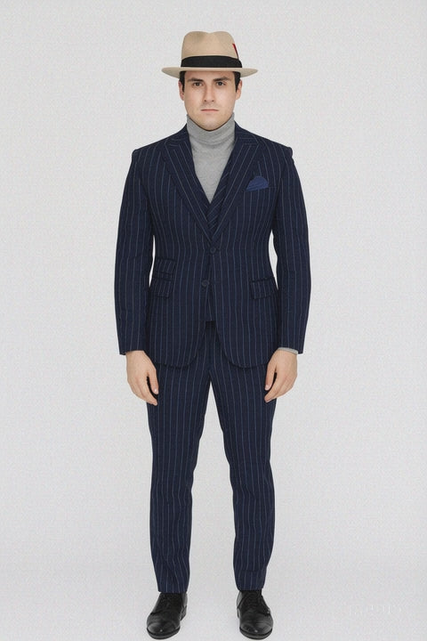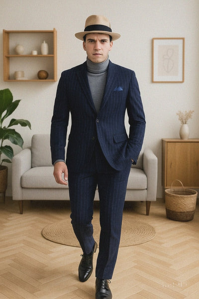 Suit And Turtleneck Combo - Turtleneck Prom Outfits - Prom Turtleneck Navy Suit