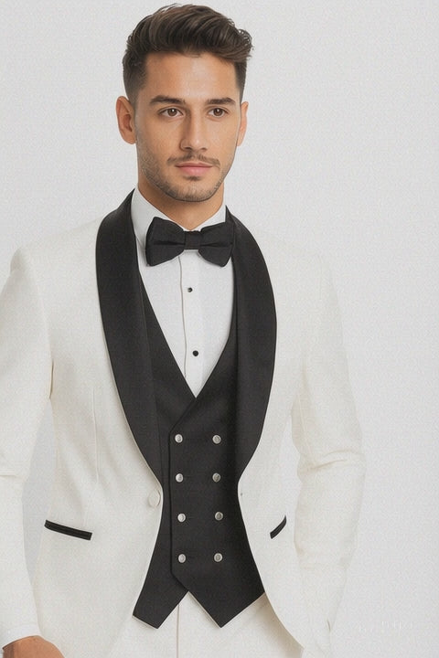 White Prom Suit Wedding Tuxedo - Groom Suit - White And Black Prom Suit